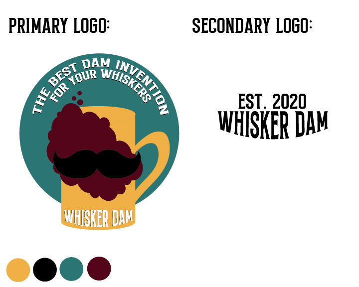 Thought process/Research: For my mundane object I chose a whisker dam, a metal piece that clips onto cups in order to keep beer foam out of men’s beards. My brand identity was focused on keeping men clean and fresh after enjoying their drinks which is why the touchpoints, which provide sophistication and grooming afterward, were successful. I wanted the logo to be pictorial with a few words; that way, the brand would be able to build much more than just a buyer-seller relationship but create mutual support through the use of their logo on things they could sell, like the flask or even t-shirts. After working a lot with the logo, I decided it was best to have a primary and a secondary logo. The secondary logo would be reserved for smaller items like the comb.