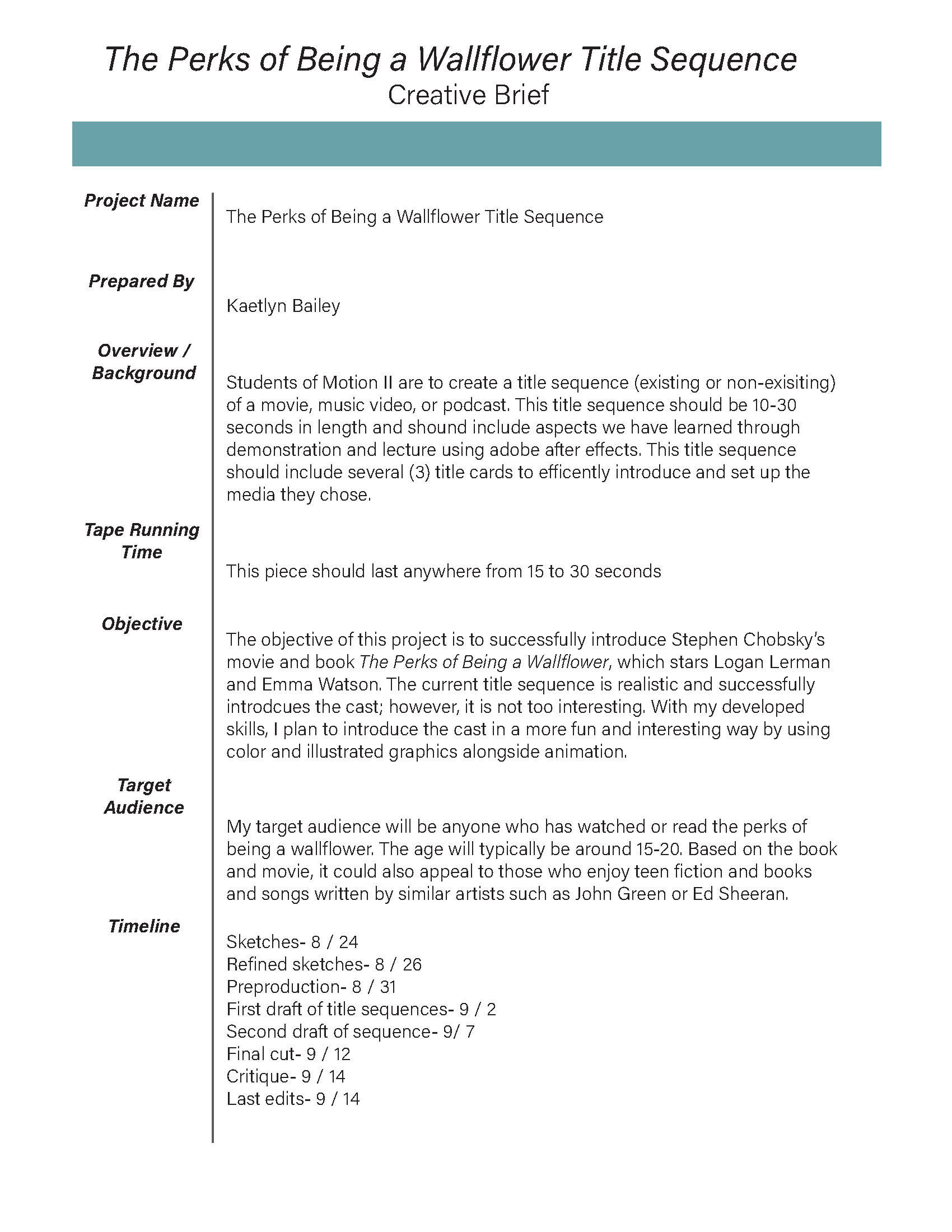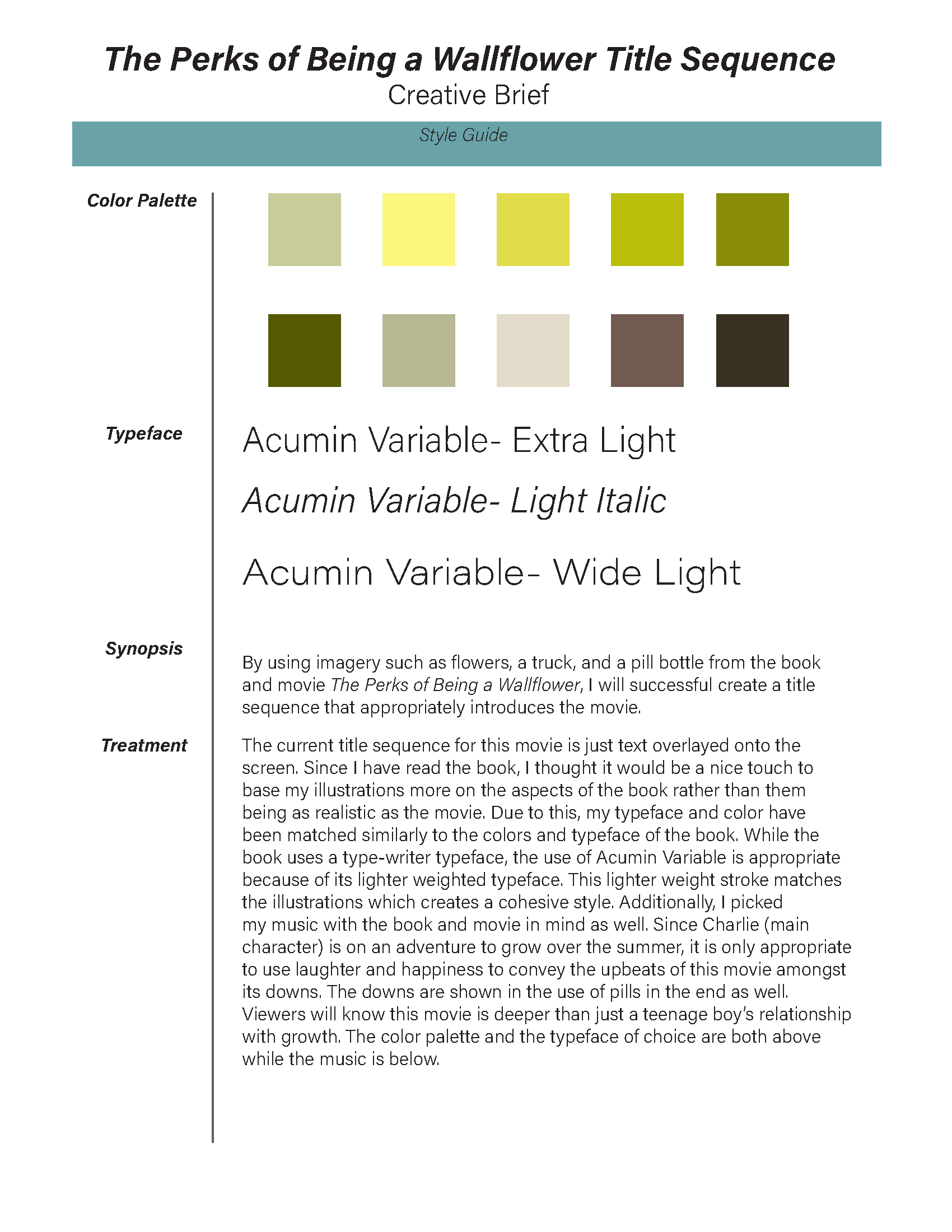 Project Description: Create a short title sequence for this project. The piece must include the main title card and two other standalone cards.